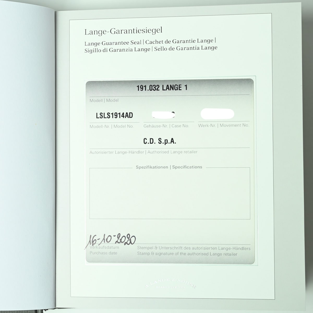 A.LANGE & SOHNE LANGE 1 REF. 191.032