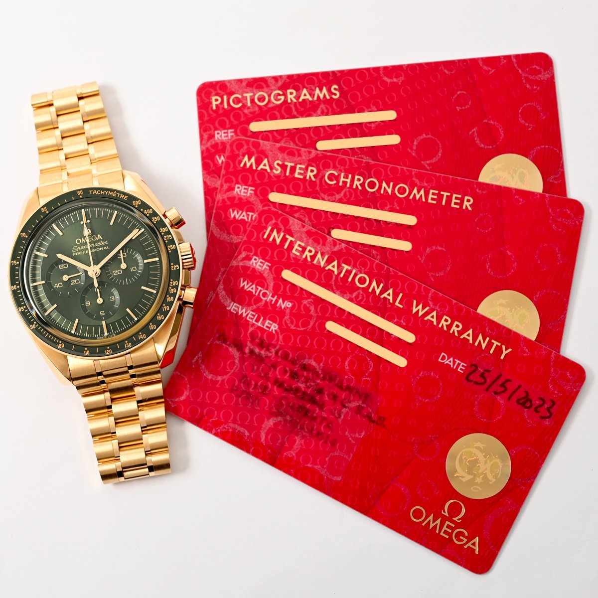 OMEGA SPEEDMASTER GREEN IN ORO GIALLO REF. 31060425010001 Fullset